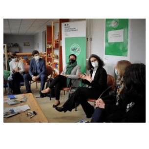 “Dans le cadre du plan de relance, Magali Charbonneau, préfète, directrice du cabinet de la préfecture de la région d’Île-de-France, préfecture de Paris et Myriam Abassi, sous-préfète à la relance auprès du préfet de région se sont rendues dans les locaux de l’association 1001 Mots.”